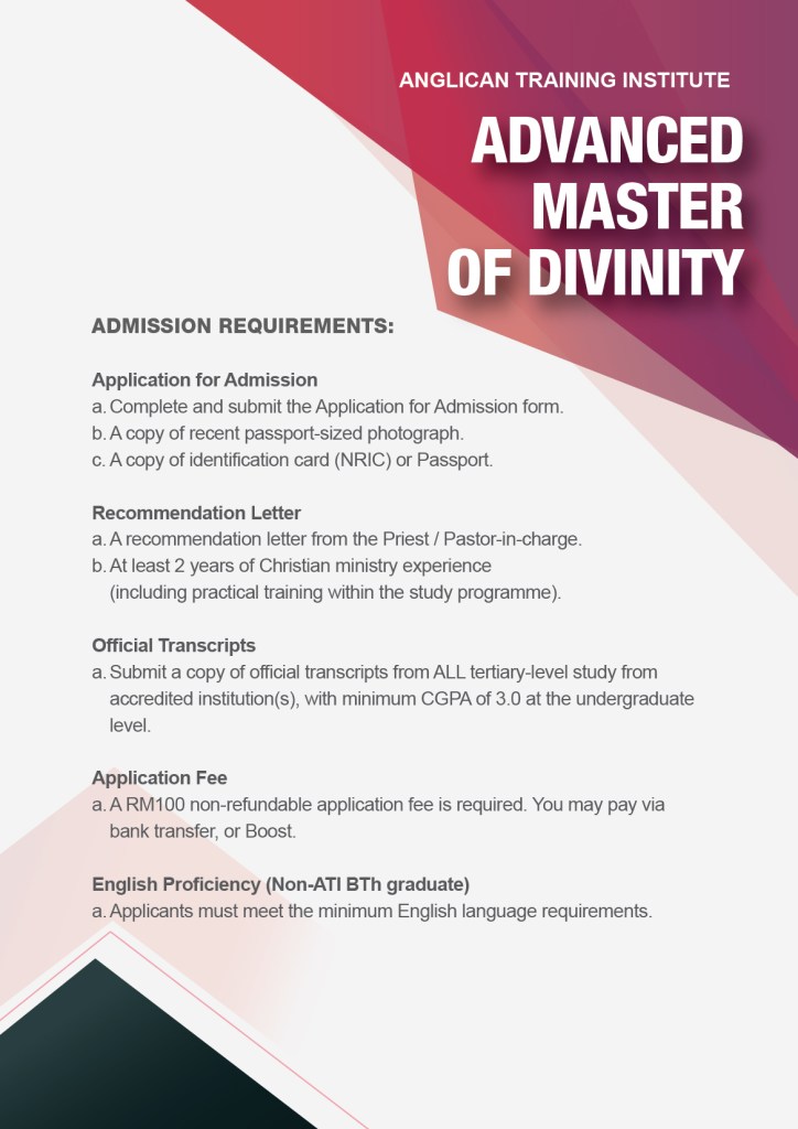 NEW PROGRAMME ( Master of Divinity & Advanced Master of Divinity)